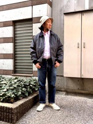 桜の季節はなんだか気分がウキウキしまね。花粉はキツイですが外へ出かけてみませんか。スタイルに参ります。花見の頃ってうすら寒いんですよね。やっぱり上着が必要です。KINGS WOODのハリントンジャケットは、こんな時の相棒にピッタリですよ。中にはBAGGYの綺麗な桜色のストライプシャツを。パンツはそこら辺に座っても良いようにCAMCOのデニムパンツで、どこでも花見O.K(笑)