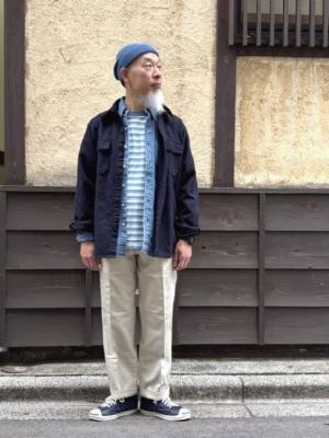 この週末あたりは、皆さんお花見でしょうか?三寒四温とはよく言ったもので、落ち着かない気温差とお天気に振り回されてます。着るもので、うまく調整して過ごすのはいかがでしょう。早速スタイリング。冬の間、インナーとして活躍してくれた「CAMCO」コットンC.P.Oシャツが、これからのシーズンにはアウターとして活躍居してくれます。目の詰まった厚手のコットン・ツイル生地なので、適度な防風性があります。身幅にゆとりを持たせた設計で、中に着るものも幅広く対応できますね。本日は「BAGGY」のデニムB.Dに、新着の「VELVA SHEEN」ストライプTEEの組み合わせ。シャツ×シャツの重ね着は、個人的に好みです。ボトムは「KINGSWOOD」のチノトラウザー。暖かくなってくると、STONEカラーの出番が増えます。ニットキャップも衣替えで、コットン素材の「LEUCHTFEUER」です。春色が入荷しています。一日の内でも体感温度に差のある季節の変わり目は、脱ぎ着の簡単なアイテムを重ね着してやりくりしていきましょう。是非。