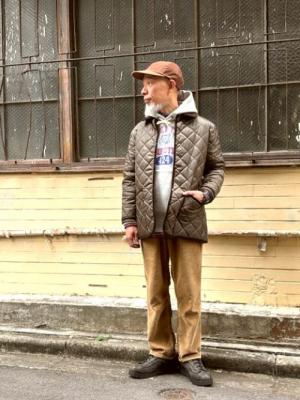 さて12月。残り1月も楽しくまいりましょう。さすがに冷え込んできて、アウターが欠かせませんね。気軽に羽織れる中綿入りアウターとして、英国製のキルティングジャケットなどはいかがでしょう。早速スタイリング。もともとは馬用のブランケットのウールの代用品として英国で広まっていたキルティング生地を、乗馬用のジャケットとして採用したのが始まり。背面の両サイドにあるスリットは、この時の名残ですね。軽量でほどほどの保温力が期待できるので、冬の街着としてすっかり定着したアイテムです。ON/OFF兼用でビジネスシーンでの利用率も高いですね。本日はOFFに振り切って、「CHAMPION」のスウェットパーカーとの組み合わせ。インナーには「BAGGY」のライトツイルシャツを合わせています。英国由来のキルティングジャケットに、ニューイングランド地方最南端のコネチカット柄のプリントもあいまって、いかにもな着合わせ。「WINNER CAPS」のシャモア×コーデュロイの2toneキャップも本番ですね。是非。