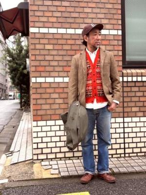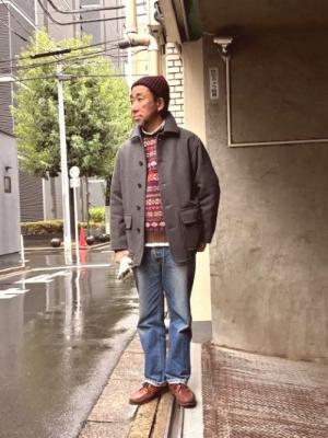 肌を刺すような風が吹き始めましたね。暖かアイテムで身を守りましょう。スタイルに参ります。やはりセーターは必需品。永く着られる良質な物がおススメです。皆さんご存じのJAMIESON'Sのフェアアイルセーターなら間違いありません。シンプルな前身ごろだけの柄入れは当店別注ですよ。上にはメルトン生地となり防寒力がアップしたカーコートを。ピーコートほどハードなイメージにならずシンプルかつ軽快に着られるます。さぁ、12月も後半へ。皆さん一緒に笑顔で過ごしましょう!