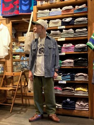 早いもので、週末からはゴールデンウイークの前半戦がスタートですね。MAINE店内は春夏物パンパンでお待ちしております。陽気も良くなってきましたので、おススメをスタイリング。久しぶりに登場の「CAMCO」ネイビーシャンブレーが良い仕上がり。通常のブルーシャンブレーよりも、ワントーン濃い色合いがGOODですね。パリッとメリハリを利かせたい時に重宝してくれそうです。インナーにはカリフォルニアは「MIXTA」から、新着のプリントTEE。相変わらずセンス良いですね。ビンテージ界隈で長く活躍している彼ららしい、こだわりの詰まった一着になっています。パンツは「GRAMICCI」から、ご無沙汰のHEMP素材が登場です。ソフトな肌触りなのに、コシがある独特な質感。ゆるい雰囲気も夏らしくておススメです。「L.L.BEAN」のモカシンあたりを合わせて、子供っぽくなり過ぎないように気を付けましょう。陽射し除けには、シンプルな「DORFMAN」の2TONEキャップが合わせやすくて◎ですよ。暦通りですと、ちょっと休みにくい前半戦ですが、MAINEでのお買い物がてら神保町散歩などいかがでしょうか。
