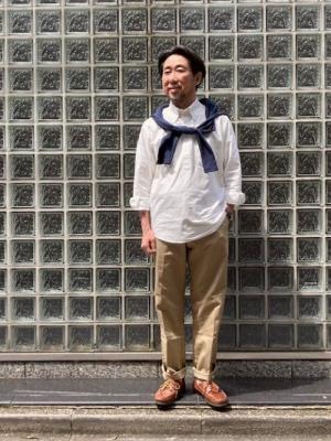 東京の週末はお出掛け日和となりましたね。店頭には春夏アイテムが充実してきました。是非お時間を見つけてお店にもお出かけください。スタイルに参ります。お待たせしていたKINGS WOODのチノパンがようやく入荷です。程よい太さのシルエットが人気の秘密。ジャケパンスタイルにも使える大人が穿くのにちょうど良いチノパンです。シャツはこの時期から主役のBAGGYのプルオーバー。トラディショナルなら長袖ですね。足元はやっぱりモカシンが良いですね。価格も作りも僕にはこのブラッチャーが最適です。