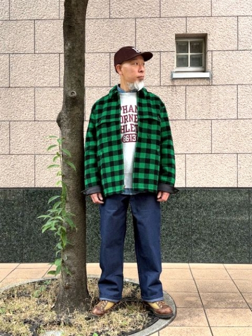 MAINE店頭でも、本格的に冬支度を始める方が増えてきました。朝晩はすっかり冷え込んできているので、お求め頂いたアイテムは早くも出番かと思われます。今週も早速スタイリング。久しぶりにグリーンのバッファローチェックが“グッ”ときました。アウターは「L.L.BEAN」の本国ラインから。ウールの表地に中綿入りのOLD SCHOOLな一着です。クラシックな見た目に反して、中綿はPRIMALOFTを使用しているので軽量で暖かい仕上がりに。これからのシーズンに気軽に羽織れます。インナーには「CHAMPION」のリバースに「CAMCO」のシャンブレーシャツで90'Sな組み合わせ。ストンとストレートなシルエットのボトムは「GUNG HO」。デニム素材は通年で人気です。キャップはアメリカの「COOPERS TOWN」。コーデュロイ使いが季節感ありますね。今回もパッチ類は別注で指定しています。冬の重ね着は、やはり楽しいですね。是非。