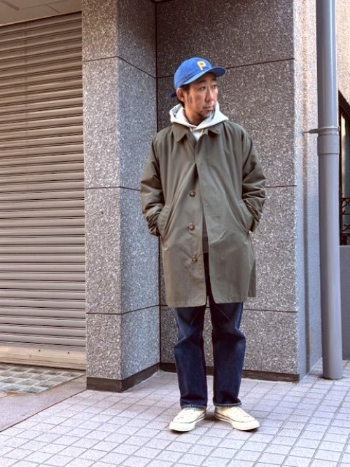 久しぶりに見た富士山は綺麗な雪化粧をしていました。気候もようやくらしくなってきましたね。重ね着を楽しんでいきましょう。スタイルに参ります。CHAMPIONの11.5oz肉厚コットンフリースはいつ着てもフカフカで気持ちいいですね。首元がスースーする季節はパーカーがおススメです。上には風除けのコートを。KINGS WOODのサプレックスナイロン・シングルラグランコートなら重ね着した上に着ても軽くて軽快に過ごせますよ。このコートは素材違いもあり、オンでもオフでも使えるので人気です。アクセントのキャップはCOOPERS TOWNのコーデュロイキャップを。綺麗な色はなかなか無いのではないでしょうか。おススメです!