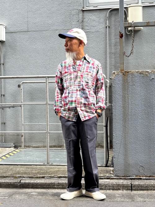 お盆休みも過ぎまして、MAINE店頭も徐々に秋冬物が入荷してきております。残暑厳しいですが、少しづつ秋を見越したスタイリングを。長袖を着るにしても、まだ薄手が良いですね。「CAMCO」のマドラスパッチワークシャツはいかがでしょう。本場インドはマドラス地方産の、本物のマドラス生地を贅沢にパッチワークにしてあります。通気性が良く速乾性にも優れているので、汗ばむ季節に重宝します。絶妙な配色のパッチワーク柄のシャツは、一枚で着てもサマになってくれるので、着こなしのアクセントとしてもおススメです。パンツはリアル・アメリカンワークの「REDKAP」から、コットン100%のワークパンツ。ゆとりのあるシルエットで、薄手のツイル生地なので熱がこもりにくいです。今時期から穿いていただけます。〆は実店舗限定で販売中の、ビンテージパッチを付けた「COOPERSTOWN」のキャップ。すべて一点物のパッチが付いているので、掘り出す楽しみがありますね。本日は全体にワーク系のアイテムでまとめたスタイリングなので、ワーク系のパッチの付いたものを選んでみました。まだまだ暑さが続きますが、気分は秋に向けて楽しんでいきましょう。