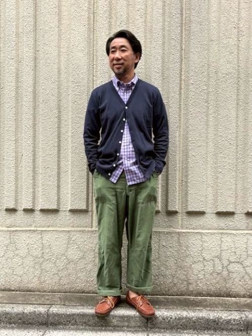 お盆休みも終わり8月も後半へ。秋物を意識したいところですがまだまだ残暑は続きそうですね…ゆっくり始めましょう。スタイルに参ります。いつものことですが、色合いから変えていくのはいかがでしょうか。マドラスシャツでも赤やピンクの華やかで夏らしい色合いから、ブラウン系の落ち着いた色合いへ。パンツもまだまだショーツを穿いていたいですが、少しゆったりしたペインターなどから始めます。SMITHのシルエットは秀逸でおススメですよ。羽織もシャツの延長でCAMCOの3ボタンジャケットを。かなり薄手で重宝します。店頭にはすでにいろいろと入荷してきていますの是非チェックをお願いいたします!