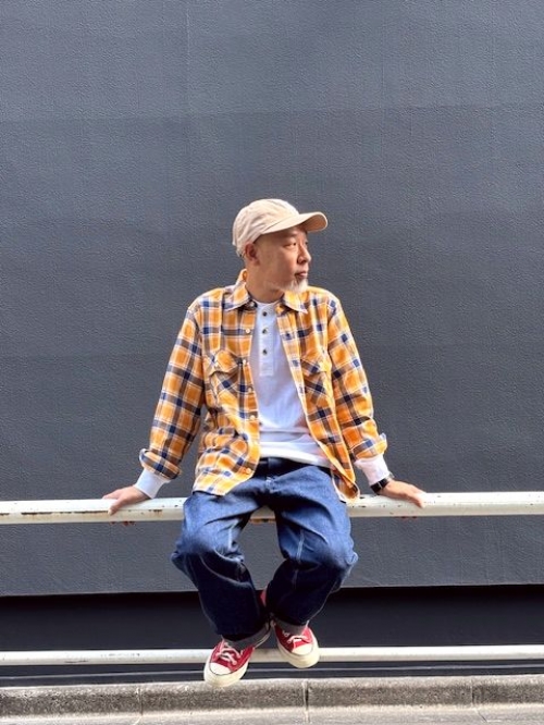 ようやく気温が下がり始める予報。素直に嬉しいです。気分的にも体力的にもそろそろ限界。待たされた分だけ、秋本番を楽しみましょう。今週もスタイリング。「CAMCO」のツイルワークシャツは、抜群の配色がポイント。イエロー×ブルーの攻めた組み合わせながら、落ち着いた印象に仕上がっていて、普段の着こなしに取り入れやすいです。ボトムのデニムとも好相性。使える1着です。インナーには「L.L.BEAN」の長袖ヘンリーネックTEE。先週に引き続き、この秋はヘンリーネックで首元にアクセントを入れたい気分です。ボトムは「SMITH'S」からデニムペインター。程よいゆとりのあるシルエットに、ライトオンスのデニム生地で、秋口のボトムにおススメ。キャップは今週も「AMERICAN NEEDLE」。せっかくの重ね着シーズンの到来ですから、色も使って楽しい着合わせを満喫しましょう。