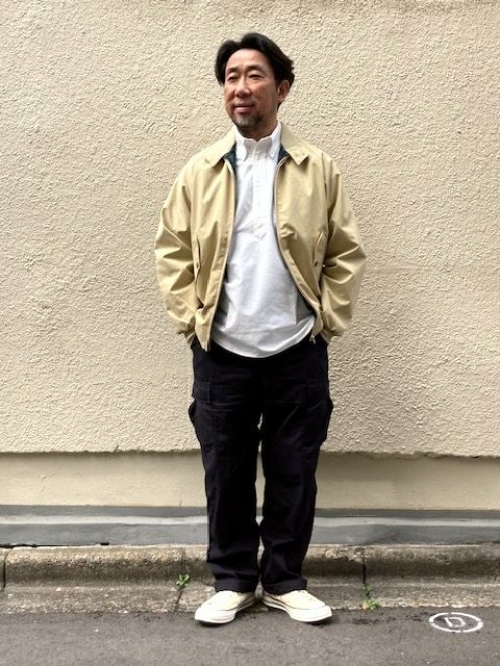 花粉や黄砂で外出したくない気持ちとお花見に行きたい気持ちが戦っている今日この頃、皆様いかがお過ごしでしょうか(笑) 気持ちいい季節、せっかくですから春の装いで外出しましょう!スタイルに参ります。定番BAGGYのシャツもプルオーバーを着たくなる時期ですね。一枚でサマになるシャツは、これからが本番です。上にはKINGSWOODの英国製ハリントンジャケットを。年がら年中手放せないスウィングトップは是非コダワリのもを選んでみてください。花見のころのパンツは、動きやすく汚れも気にならないカーゴパンツがおススメですよ。自分にとって合わせやすい色を選ぶとより取り入れやすく重宝しますので是非お試しを。
