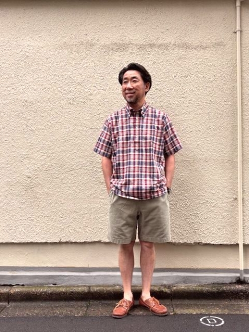 しっかり梅雨の天気になってきましたね。この時期はマドラスシャツの快適さを実感できる時ですね。スタイルに参ります。長袖、半袖、前開き、プルオーバーと皆さんに色々と楽しんでいただいているマドラスシャツ。それぞれのコダワリがあって面白いですよね。トラディショナルなアイテムは、やっぱりいいです。夏らしくグラミチの短パンにモカシンで、いつものスタイル完成です(笑)